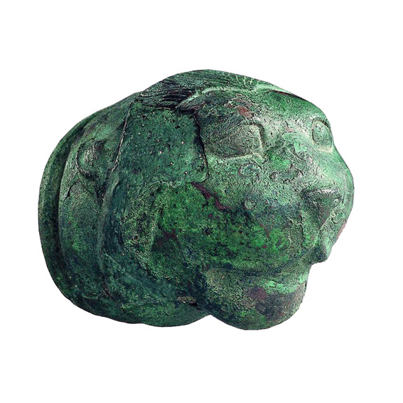 Glava iskucana iz jednog komada tankog brončanog lima prikazuje životinju u stanju napete pažnje. Njena dojmljivost je pojačana poluotvorenim ustima, naglašenim obrvama i velikim izbočenim očima fiksirajućeg pogleda. Gravirana griva naznačena usporednim valovitim urezima koja okružuje njušku još odaje geometrijski stil sklon ornamentalnim uzorcima.