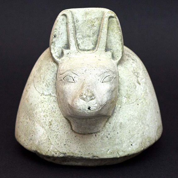 In the process of mummification the internal organs were taken out of the body balsamated and placed in separate canopic jars. The heart remained in the body. Each organ was under the protection of one of four sons of Horus whose faces appear on the lid, and of four goddesses.