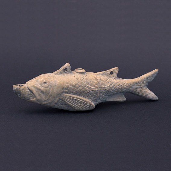 Hanging lamps of this kind were used in the catacombs from the 1st c. and were produced in large numbers and kinds in the 4th and 5th c. In early Christian times the fish was the symbol of Christ.