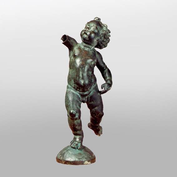The bronze statue of a putto standing on a hemisphere is the work of one of the leading figures of Quattrocento Florentine sculpture. Verrocchio, especially credited for the development of the technique of casting in bronze, proves yet again his remarkable mastership with this sculpture. The putto is presented in swift movement. His leg thrown back and the highly raised hand make the movement gracious and fluid, rendering the statue lively and dynamic. The softly modelled body, the smooth surfaces of the limbs, their fine flexure, the short hair with tiny curls, all these are typical of Verrocchio's small naked putti.