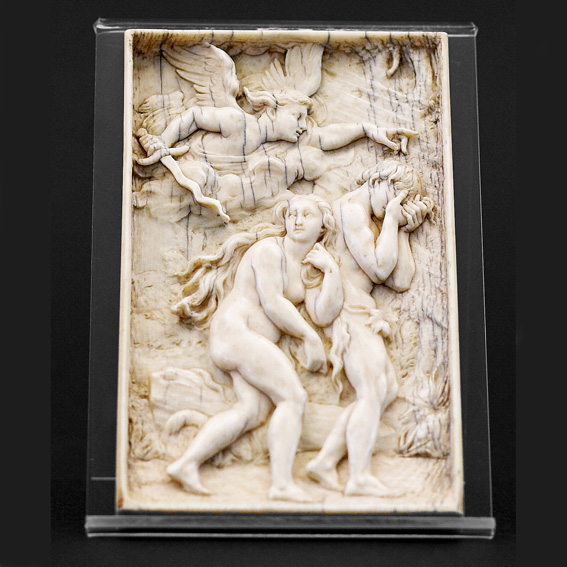 In the background bushes and grass are suggested. The flat surfaces of the bodies reflect the light and in contrast with the more absorbent background allow a fine play of brightness and shadow which highlights the deep emotion of the figures. Shame and repentance are expressed by expression and look, everything is subordinated to it from the muted background to the strong, smooth and taut muscles of the bodies.