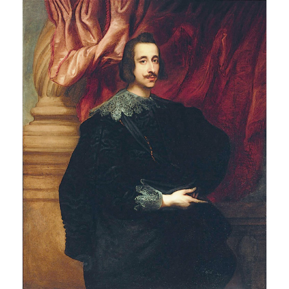 Unlike the figure, the background decoration was not "finished" but just roughly sketched. Probably here, too, as often before, Van Dyck let his apprentices do the tiresome painting of the background which elevates the nobleman in an eloquent fashion, as is emphasized by his half-closed eyes and an apparent distancing. The portrait was made in the late period of the artist's work.