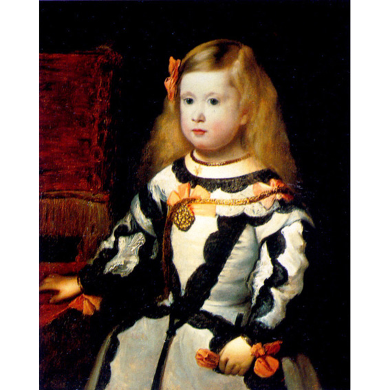 The demand for portraits of Leopold's future bride was so great that Velázquez often painted Margarita between her second and eighth birthday. He was masterly in recording the hardly noticeable changes as she was growing, achieving the highest peak of "realism" through strict observation.