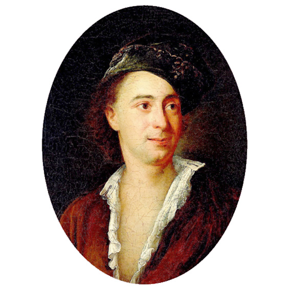 The wide open eyes which are looking to the right, somewhere behind the artist, and the ironic smile evince his jaunty character. The natural flesh colour is tinted red in the shadow, and green on the left lighted side of the face. This modulation of warm and cold tones is the simplified heritage of Rubens's art in 18th c.
