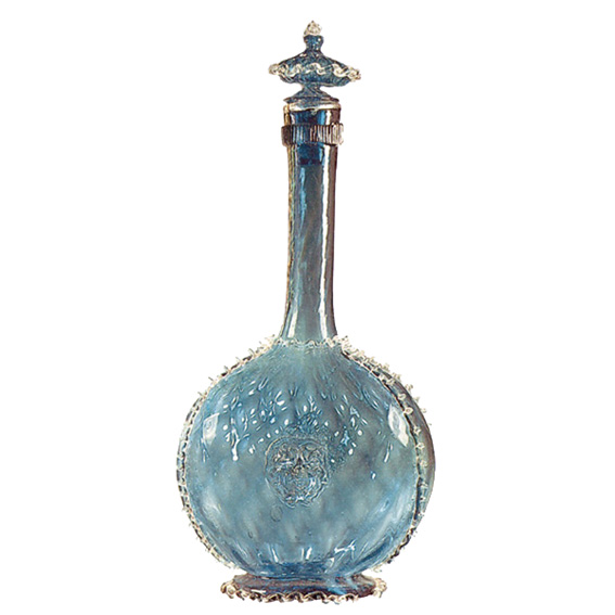 Uz cristallo, koji je osnovna tvar renesansnog staklarstva, staklo u boji i dalje se upotrebljava u muranskim radionicama. Boje su manjeg intenziteta od onih kasnogotičkih, o čemu svjedoči i ova boca. Kombinacije uporabe reljefno oblikovanog kalupa i apliciranih ukrasnih elemenata stopljene su u uzbibanu manirističku formu. Museo Vetrario na Muranu čuva nekoliko jednako ukrašenih predmeta iz istog vremena.