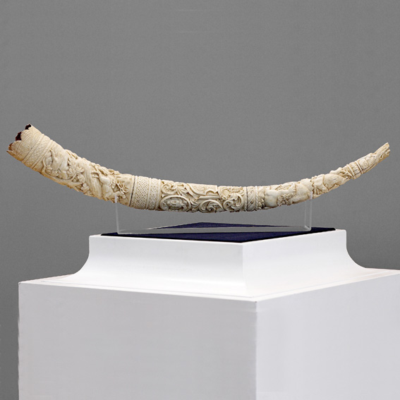 Rog je sastavljen od tri dijela izdubljene nutrine, koji spojeni daju oblik slonove kljove. Ukrašen je rezbarijama visokog reljefa, kompozicijski podijeljenih poprečnim trakama u tri zasebne cjeline. U središtu konkavnog dijela roga, postavljen na hermelin, prikazan je grb Kraljevine Poljske u upotrebi od 1386.g., koji se sastoji od orla s krunom raširenih nogu i krila dinastije Piast i konjanika dinastije Jagellon ukrašen kraljevskom krunom.