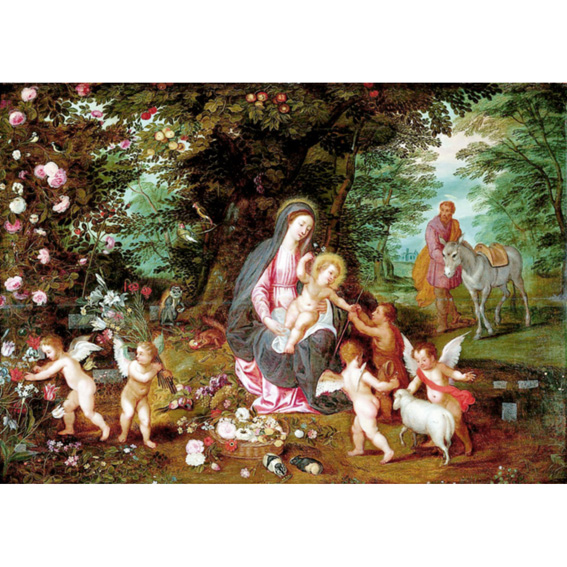 Slika je još jedan primjer suradnje na istoj slici između Jana Brueghela St., glasovitog slikara cvijeća te i njegova prijatelja Hendrika van Balena, istaknutog antwerpenskog slikara obnaženih figura malog, kabinetskog formata. Tipična je za Brueghela minucioznost u opisivanju pojedinosti krajolika i cvijeća, a za van Balena istaknutiji volumeni figura, u kojima se razaznaje Rubensov utjecaj.