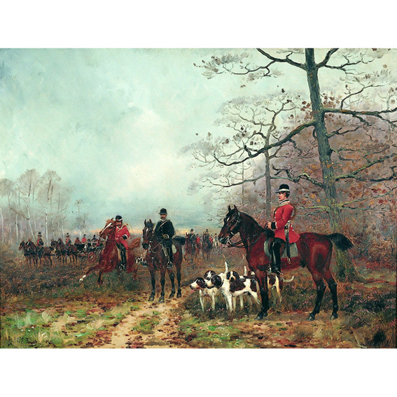 A. G. Binet, slikar pučkog života pariških ulica, proslavio se slikanjem konja. Na ovoj se slici latio teme iz života viših krugova. Očita je slikareva sklonost prikazivanju pojedinosti vezanih za lovačku nošnju, konjsku opremu i društvene običaje svoga vremena. On točno uočava i posebnosti svojstvene francuskoj jahačkoj tradiciji, koja spaja civilno i vojničko jahanje, trkaće jahanje i dvoransku dresuru.