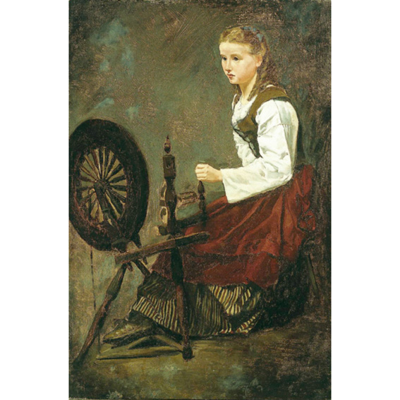 Realistička je genre-scena mlade djevojke u švicarskoj narodnoj nošnji za kolovratom ostvarena samom bojom. Alpski tip lika, bez psihologizacije, pretpostavljen je portretnim osobinama djevojke, tako da je tema obrađena na način obično namijenjen mrtvim prirodama.