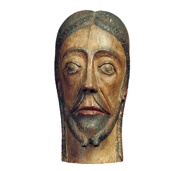 The head somewhat resembles the wooden head of Christ from a Crucifix from South Cerney in the county of Gloucester in England, dating from the 2nd quarter of the 12th c. The almost identical carving of the hair and beard, the strongly accentuated bones, on the ascetic face, and the prominent high eye arches indicate that they were made around the same period.