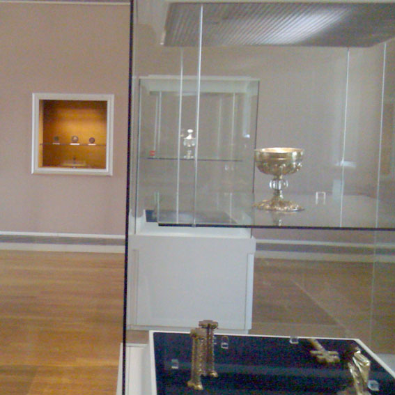 The metal pieces exhibited in this room originate from Cologne and Limoges which were two strong centres of such craftmanship.
