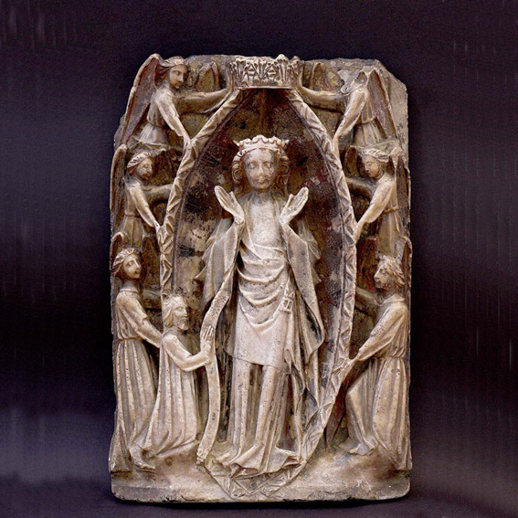 This Mimara carving is considerably damaged. It lacks the usual upper part which showed the Trinity or God the Father surrounded by angels. Many similar alabaster depictions of the Assumption are known whose stylistic characteristics show them to be English works from 14th and 15th c.