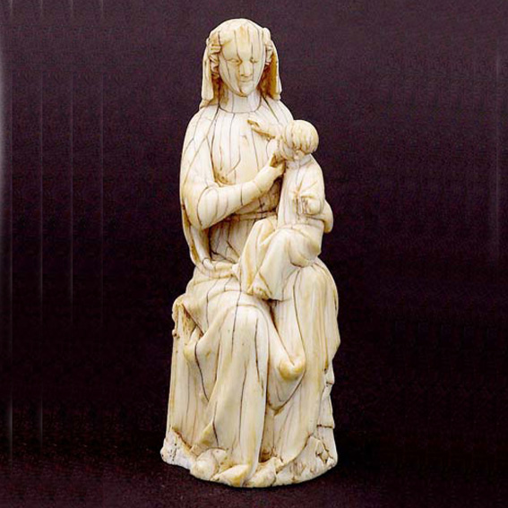 This Mimara statue of the Virgin is very similar to the one in Yale University Art Gallery, New Haven, dated the 2nd quarter of the 14th c. (Randall, The Golden Age of Ivory, 1993, p. 38, no. 10) and is an example of the Virgin's feeling of motherhood.