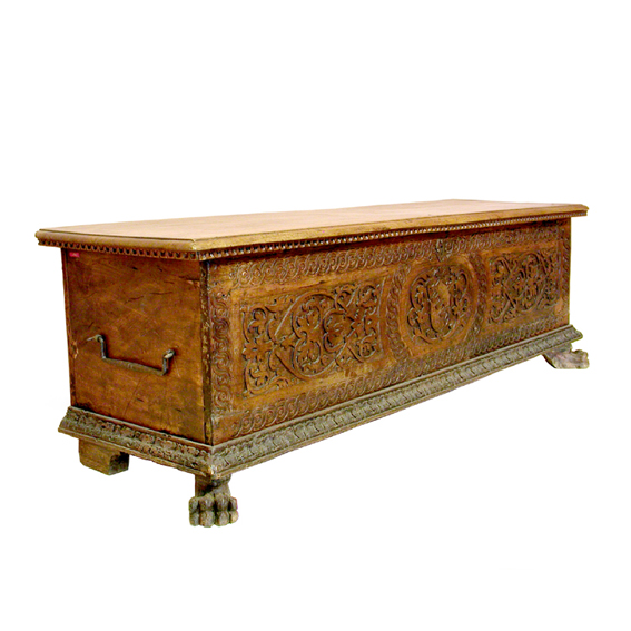 Chests were the commonest items of furniture both in medieval and Renaissance times, this one is typical of the decoration and fine proportions of Italian workmanship when medieval simplicity was gradually giving way to lively carving in various patterns. The carving allows us to date the chest to the beginning of the 16th c.