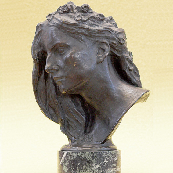 This head of Flora, goddess of spring, is by the famous Belgian sculptor Meunier who was working in the 2nd half of the 19th c., and who in subject matter and method greatly influenced not only Belgian but central European sculpture at the turn of the century.
