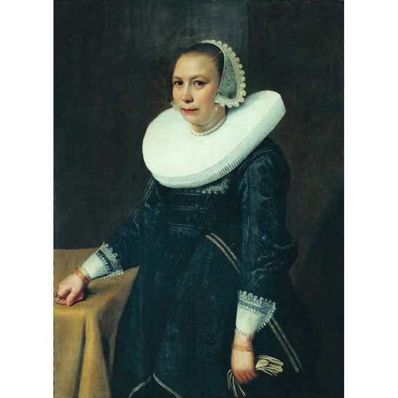 The pink flesh colour of her lighted face is particularly emphasized. The volumes are shaped by toning the cold grey and warmer, transparently-shaded hues. The figure is made attractive by the expressive tonality that confers a life-like quality to her complexion and melancholy gaze. Despite the rapid brush-strokes, a reserved realistic impression has been achieved.