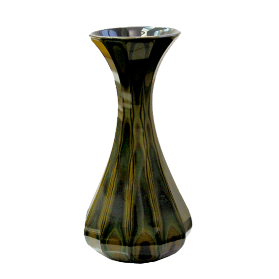 Lithyalin is opaque glass imitating semi-precious stones developed by Friedrich Egermann. He produced a large number of articles mostly by cutting and polishing until the 1840s. The polished surfaces of this vase are iridescent with various colours and tones achieved in the dense lithyalin.